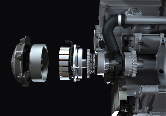 L'alternateur a été considérablement réduit et fait parti intégrante du moteur.