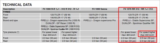 Je regarde la specs technique pour ma f4 car apres 6000KM mon pneu arriere est mort et je me demandais donc qu'elle était la pression recommandé par MV et la surprise!!!!
