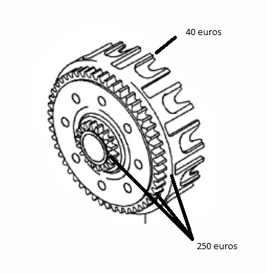 Avec mon concess, on regarde pour uniquement changé la cloche et non pas le kit complet cloche + pignon primaire de boite, pièce serties ensemble.
