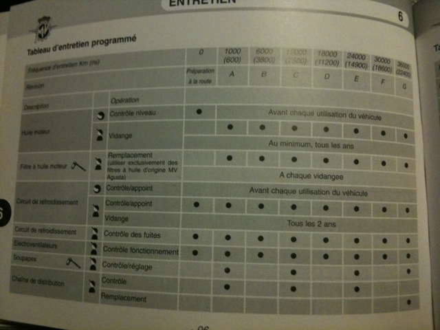 Voici pour le reste du plan d'entretien pour F4 750...