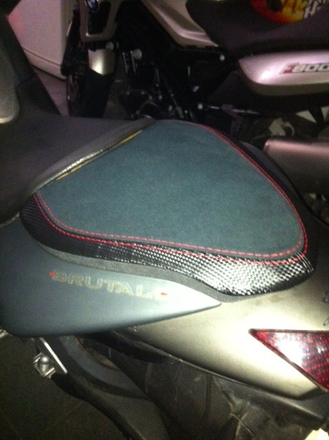 Je vous mets aussi des petites photos après un premier essai de montage sur la selle passager !! Je l'ai mis sans retirer le revêtement initial de la selle !!
