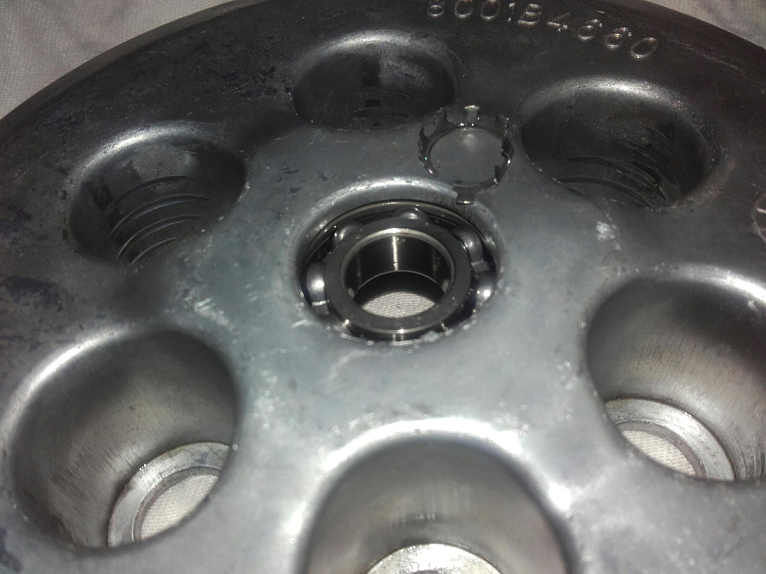 je demande conseil à mon concess, problème inconnu au bataillon, il me conseille de vérifier le roulement de butée d'embrayage, je démonte, c'est pas ça, c'est beaucoup plus petit celui que je cherche! (mais bon j'ai pas démonté pour rien je trouve genre 6dents cassées sur le plateau de pression ^^)